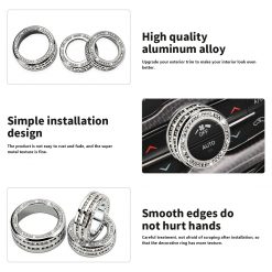 Auovo Air Conditioner Switch Ring for Charger/Challenger Accessories 2015-2022 Interior for Chrysler 300 Set of 3 Silver with Rhinestones