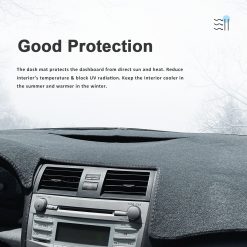 - [Good Protection] The dash mat protects the dashboard from direct sun and heat. Reduce interior’s temperature & block UV radiation. Keep the interior cooler in the summer and warmer in the winter. It also helps reduce hazardous windshield glare, improve the driving safety.