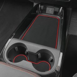 - ADVANTAGES: Give a new look to your Mustang Mach E interior with these mats on. Adds a nice pop of color. Great way to keep car clean. Protect your car slot from dirt and scratches. It will reduce rattling sound caused by small things like keychain or coins while driving.