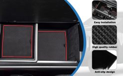 - EASY TO USE – Clean the positions where you going to install the Cup Holder Inserts Center Console Mats, then put them into the positions no other tools required. A small handle tab on the mat surface for easy removal when needed.