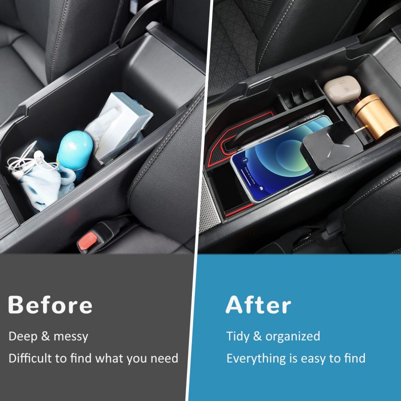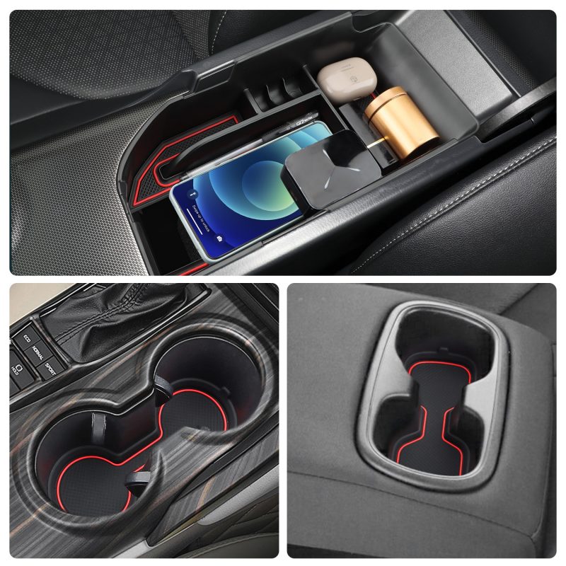 - [HIGH QUALITY]- Armrest Center Console Organizer is made of high quality ABS Material, sturdy&durable. Cup Holder Insert Liners are made of High-Temperature Resistant Silicone. Washable and Durable, all-Weather Protection. Makes cups in drink holder quiet and prevents rattling around. Adds a nice pop of color. Great way to keep Cup holder clean.