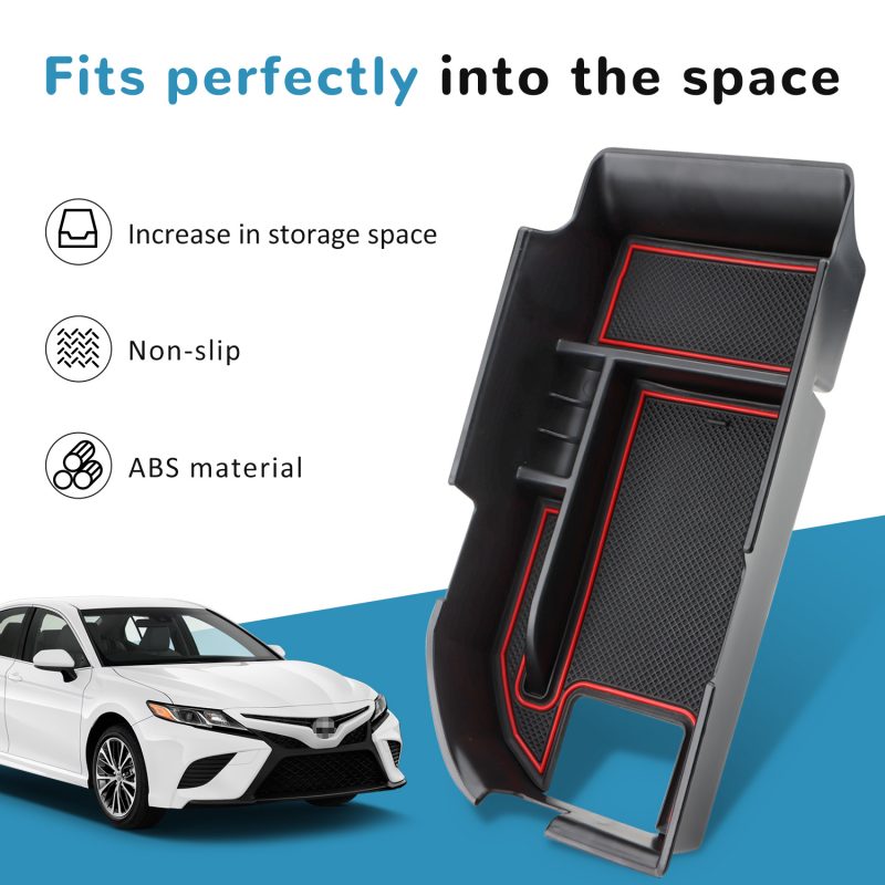 - 【FIT PERFECTLY】 Auovo 3D Cup Holder Inserts & Center Console Organizer Accessories Compatible with 2018-2024 Toyota Camry XLE XSE and 2020 2021 2022 2023 2024 Camry LE SE with Dual USB Ports. (Please note: It also fits 2018 2019 Camry LE SE without USB Ports, but this tray has a hole for the charger plugs, please make sure you don’t mind the hole before purchasing.)