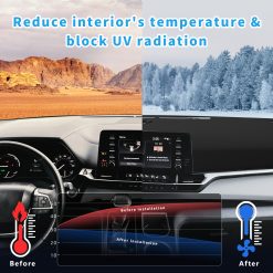- [Good Protection] The dash mat protects the dashboard from direct sun and heat. Reduce interior’s temperature & block UV radiation. Keep the interior cooler in the summer and warmer in the winter. It also helps reduce hazardous windshield glare, improve the driving safety.