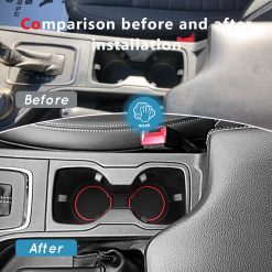 - 【PULL-TAB and RAISED BORDER】1. Small pull-tab, easy to install and remove to clean. Remove the original cup holder and put them on. 2. Raised border, like a wall to hold the water splashed from the cup and prevent it from spilling on the original cup holder. They are snug enough that the rear one does not move when the arm rest is in the upright stored position.