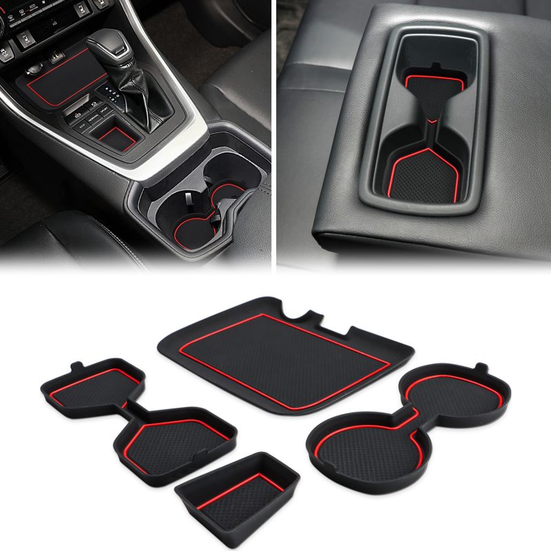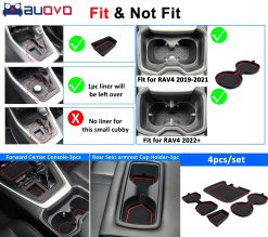 - 【FIT PERFECTLY】Auovo Car 3D Cup Holder Insert liners Forward Center Console Mat accessories Compatible with Toyota RAV4 2019 2020 2021 2022 2023 2024 with trim level of limited / LE / XLE /XLE Premium / Adventure/LE Hybrid/ limited Hybrid/XLE Hybrid/ XSE Hybrid etc. (For left driving ONLY.) 4pcs/kit.