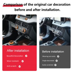 - 【What You Get】6pcs/set , including 2 pcs Radio Knob Covers for Volume Tune Knob+2 pcs Air Climate Control Rings + 1 pc Drive Mode Gear Shift Knob Cover + 1 pc Headlight Control Switch Knob Cover. Align the knob position, press in and it will fit snugly, comes with extra tape for spare usage.