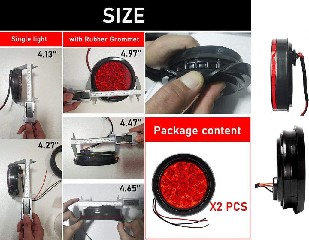 - Package Incl.: 2 pcs Red Lights with Grommet. Product’s dimension: Dia 4” and only 3/4″ thick without grommet, with grommet fits standard mounting hole(the rubber grommet can be removed).