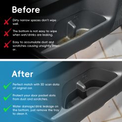 - 【Quality Material】Door Side Storage Tray are made of TPE material. Washable, Durable, Heat-resistant and all-Weather Protection. Protect your car door pocket slot from dirt and scratches.
