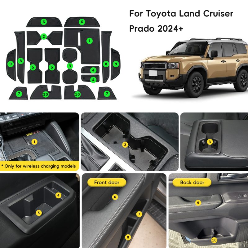 - 【FIT PERFECTLY】Auovo Cup Holder Insert Door Liners Compatible with 2024 2025 Toyota Land Cruiser Prado 250 J250 LC250 (Land Cruiser/First Edition) ( Only for configurations with wireless charging. Not fit Land Cruiser 1958.) [Fit Left-hand drive Only. ]