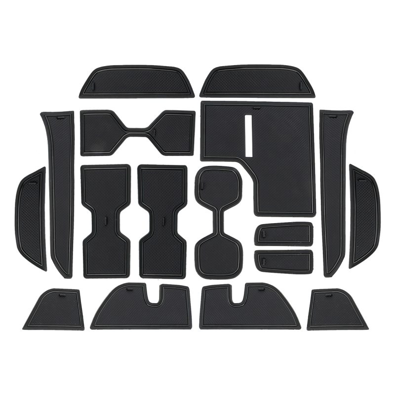- 【GOOD QUALITY】 17PCS Cup Holder Insert Door liners are made of Rubber. Washable and Durable, all-Weather Protection,Non-slip and reduce noise. The car liners collect and hold condensation from your bottles, cans or drinks, prevent your cup holders from getting wet, sticky, gooey. Easy to remove it to clean with water. Prevent cans and cups from sliding around and stop bottles rattling in your cup holders.