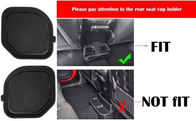 - 【NOTE!!! 】PLEASE PAY ATTENTION TO THE SHAPE OF BACK SEAT FLOOR CUP HOLDERS. This set of cup holder coasters ONLY FIT FOR DEEP REAR CUP HOLDERS AS SHOWN IN THE PHOTOS. They MAY NOT FIT IN SOME TRIMS. Please see the listing photos carefully before purchasing.