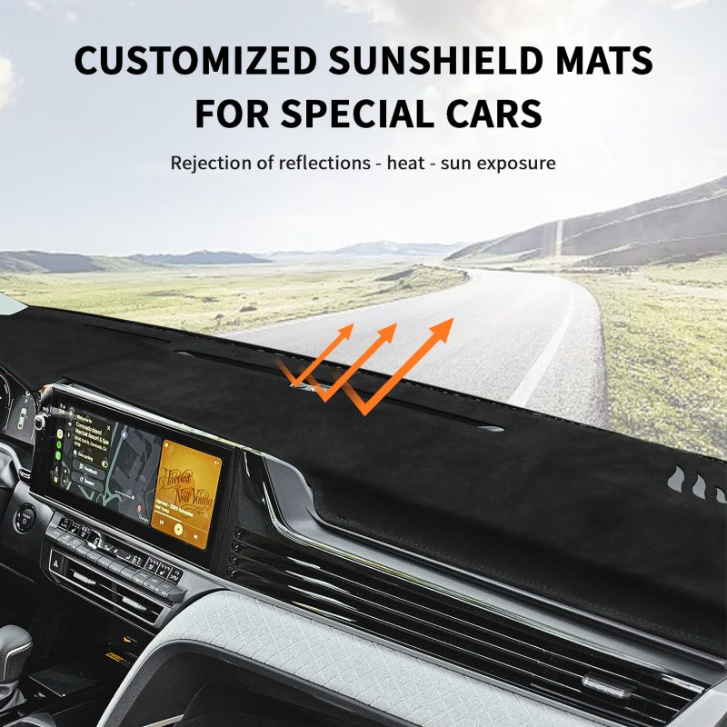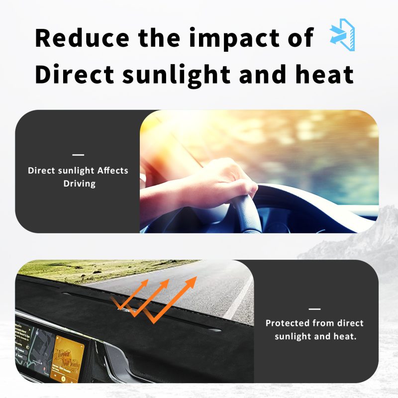 • [Excellent Material] Dash Board Cover Mat consists of 3 layers: High Quality Suede-like fabric surface, Sandwich heat insulation cotton and Silicone little dots anti-slip backing. It is soft and soothing to the touch.