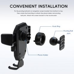 - 【CONVENIENT INSTALLATION】The installation can be done in few minutes. Place the screen bracket to the touchscreen confirm if it is suitable. Fix the pivoting ball joint on navigation screen bracket from bottom to top. Then rotate the Knob Ring to attach the phone holder and pivoting ball joint. Attach the screen bracket to the touchscreen. Auovo Phone Holder for Grand Highlander 2024+ have quick-release button and adjustable clamp arms for easy locking and releasing of your phone.