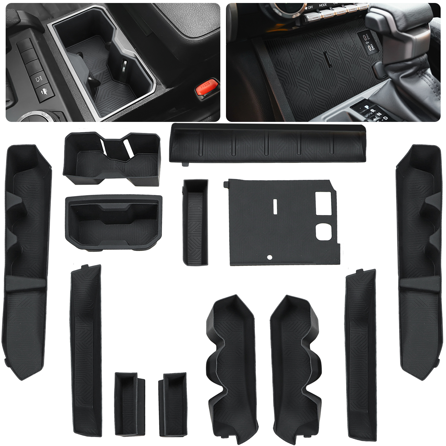 • 【Package Content】13pcs Insert liners for cup holder, Wireless Charging Area and door pocket.