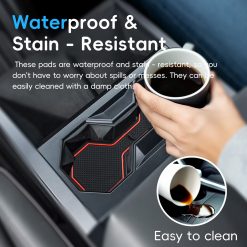 - 【EASY TO USE】Clean the positions where you going to install the Cup Holder Inserts Door Slot Mats, then put them into the positions no other tools required. A small handle tab on the mat surface for easy removal when needed.