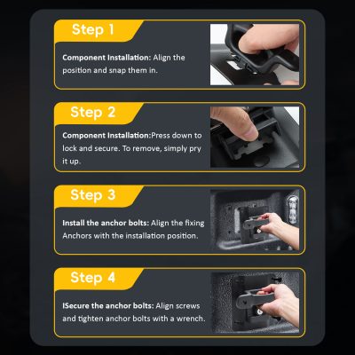 - 【FUNCTION】:This tie downs adds anchor points to Ford F150, F250, F350, helping to securely fasten various items in the truck bed. It prevents cargo from shifting and generating noise, ensuring safe driving.