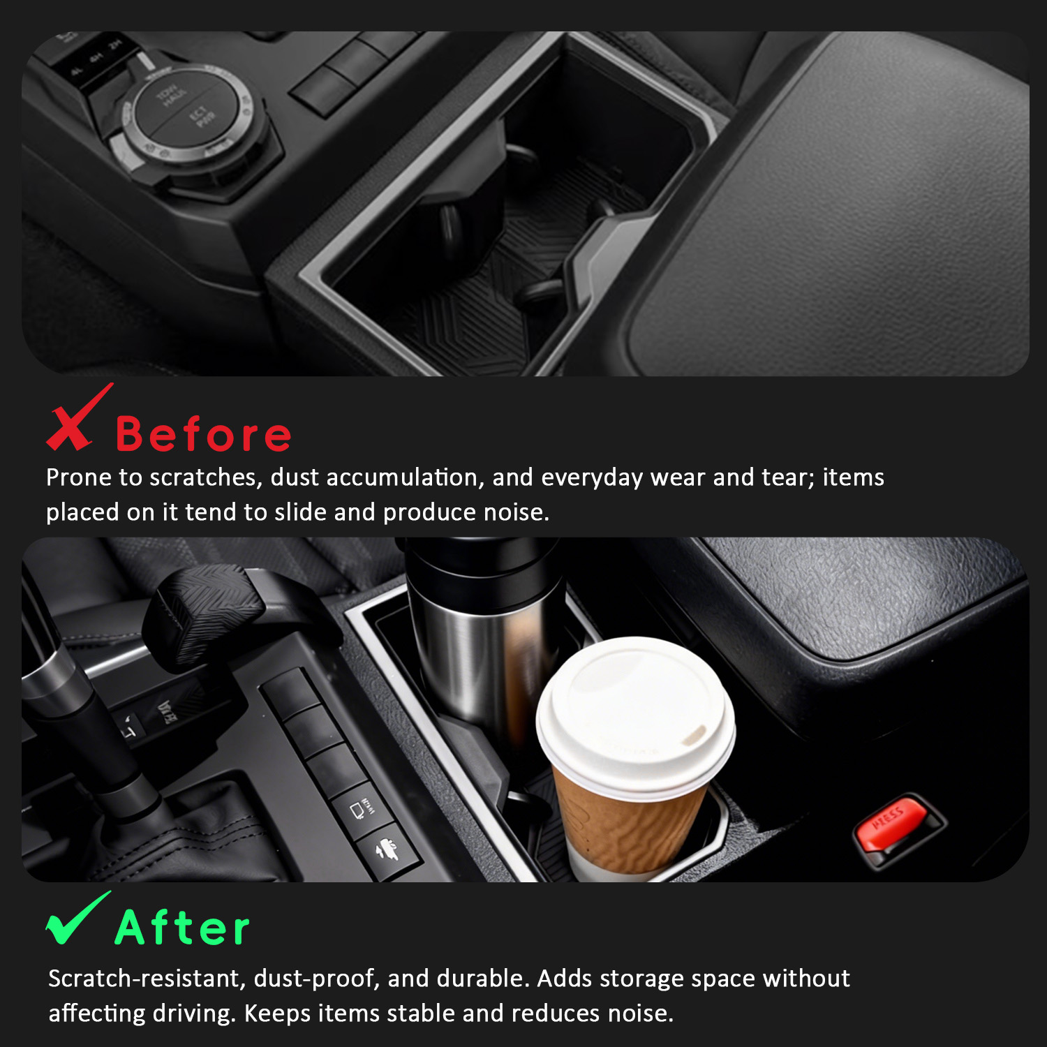 - 【NON-SLIP& ANTI-DUST】The bottom of the cup holder features a textured design that increases friction, effectively preventing water cups from shaking while driving. It also keeps dust and other debris from soiling your Tacoma 2024+.