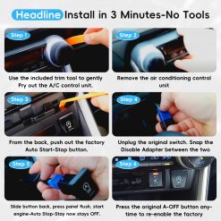 - 【Easy to install】It is equipped with disassembly tools. You only need to take out the panel and plug the Start-Stop Eliminator into the corresponding A-OFF interface without any other operations. Moreover, it will not interfere with other functions of the vehicle.
