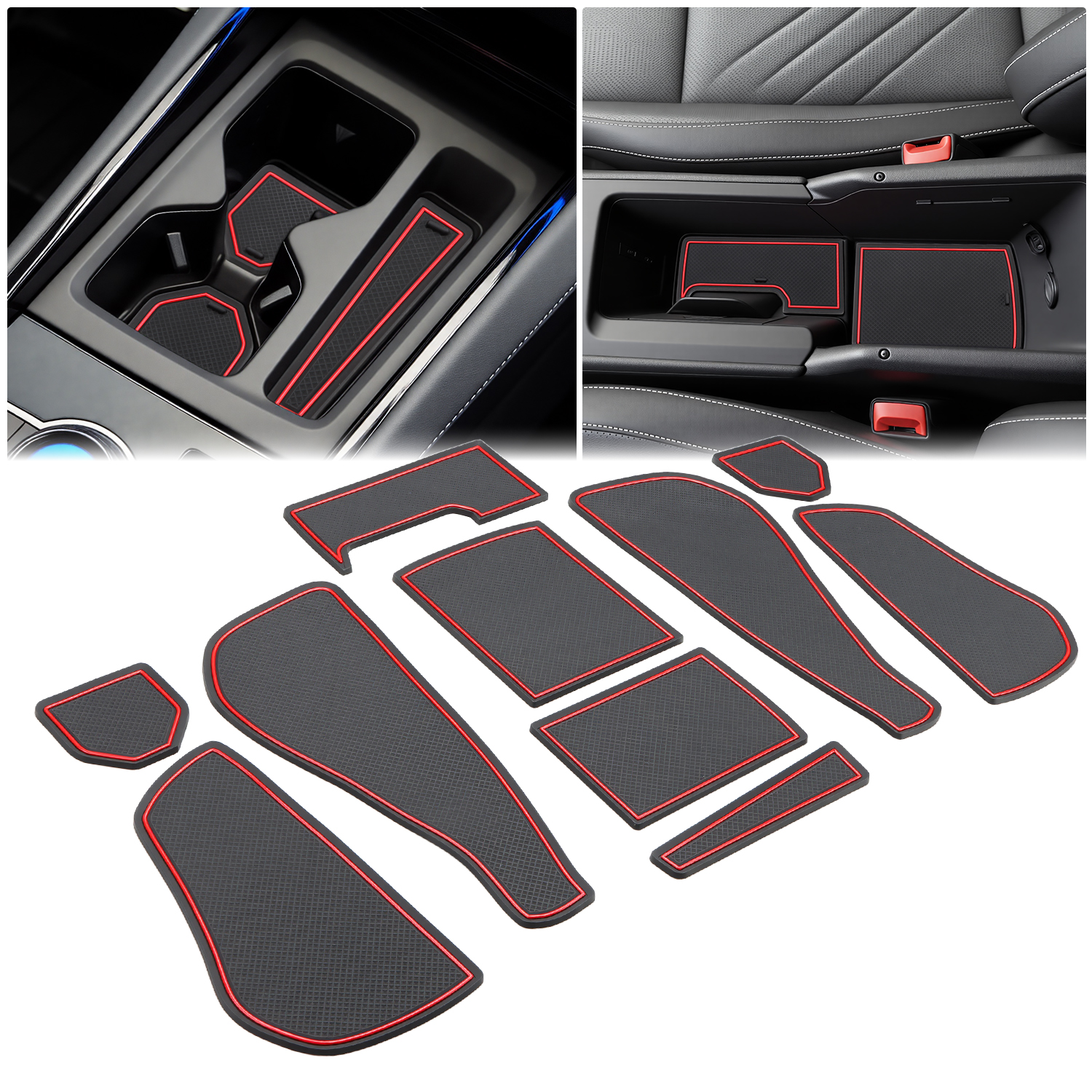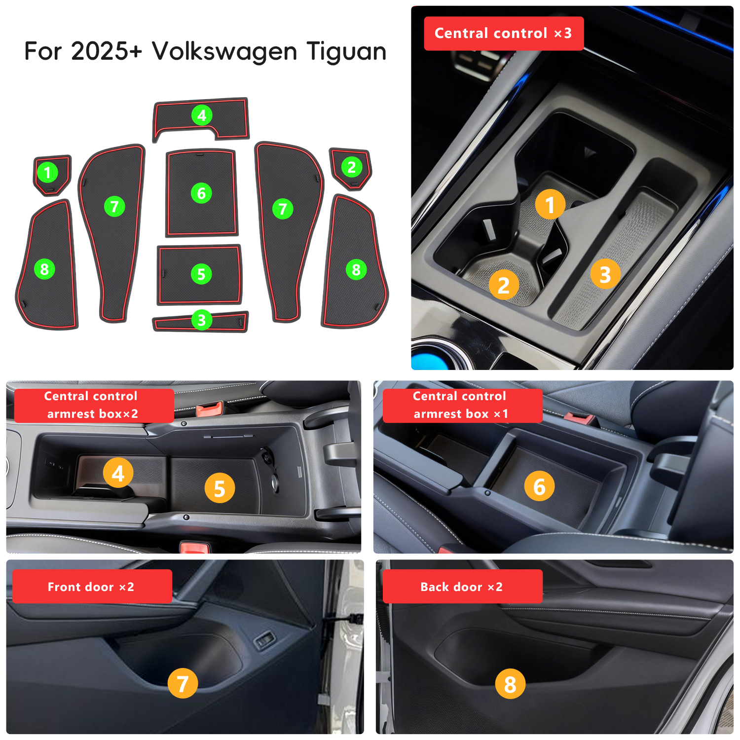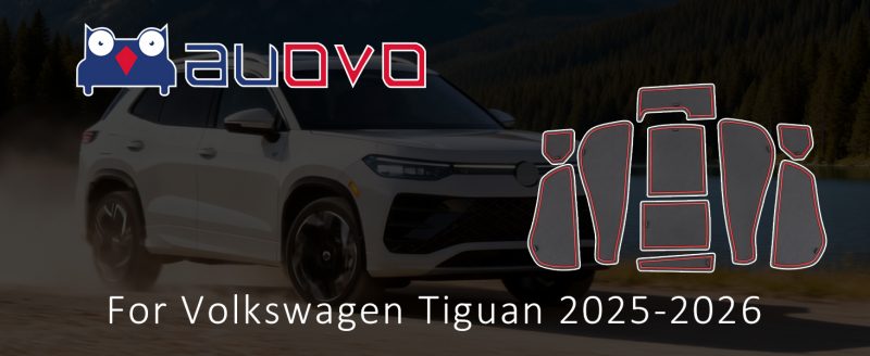 Auovo Anti Dust Door Mats for Volkswagen VW Tiguan 2025 2026 Accessories Car Cup Holder Insert Center Console Interior Door Compartment Liners 10pcs/Set (Red)