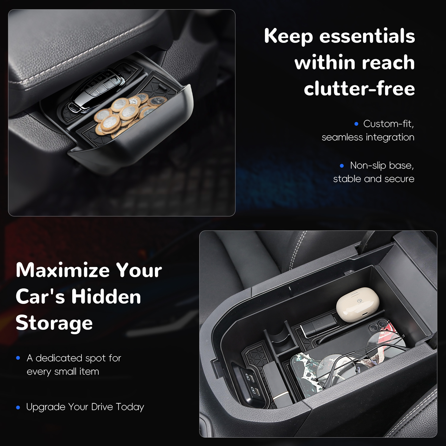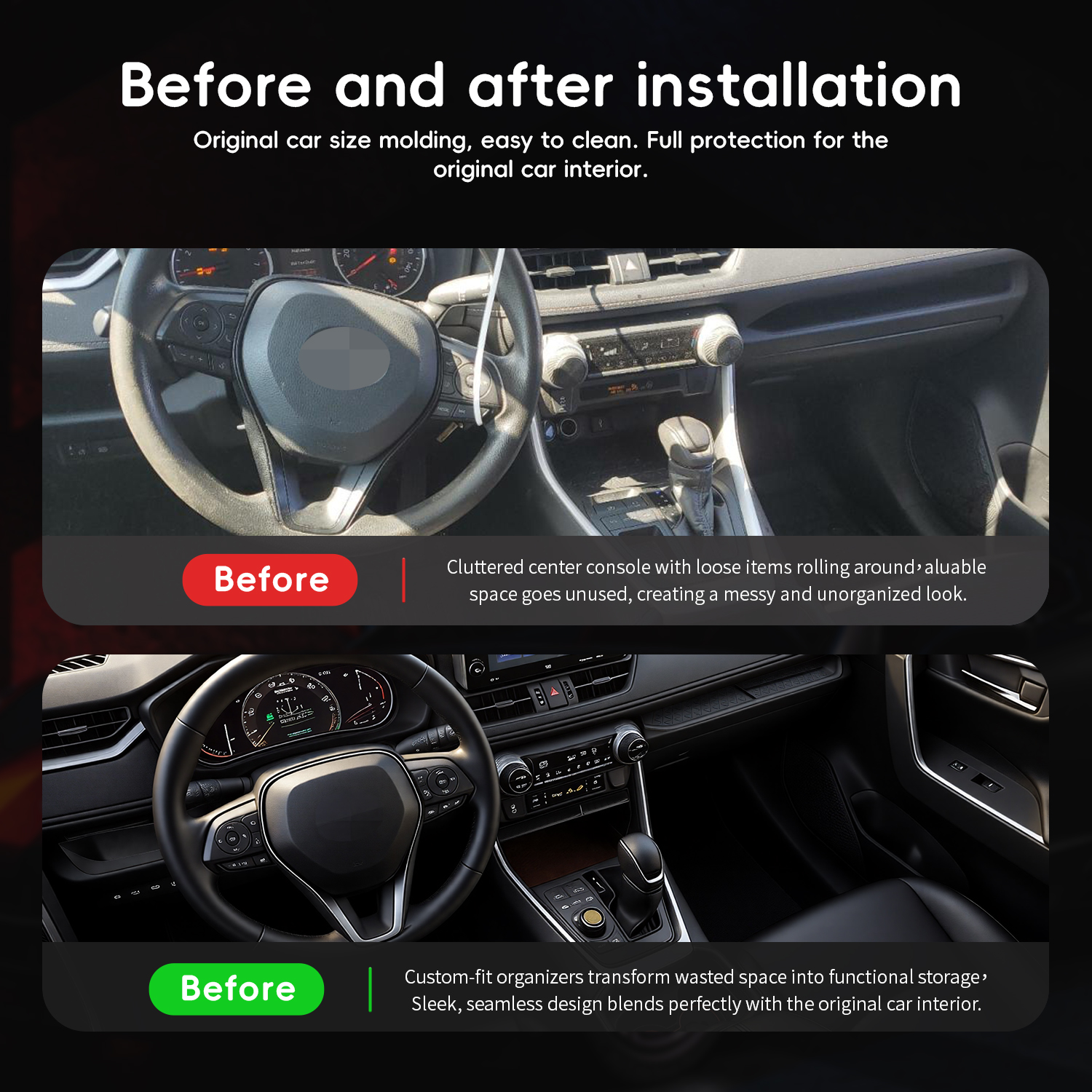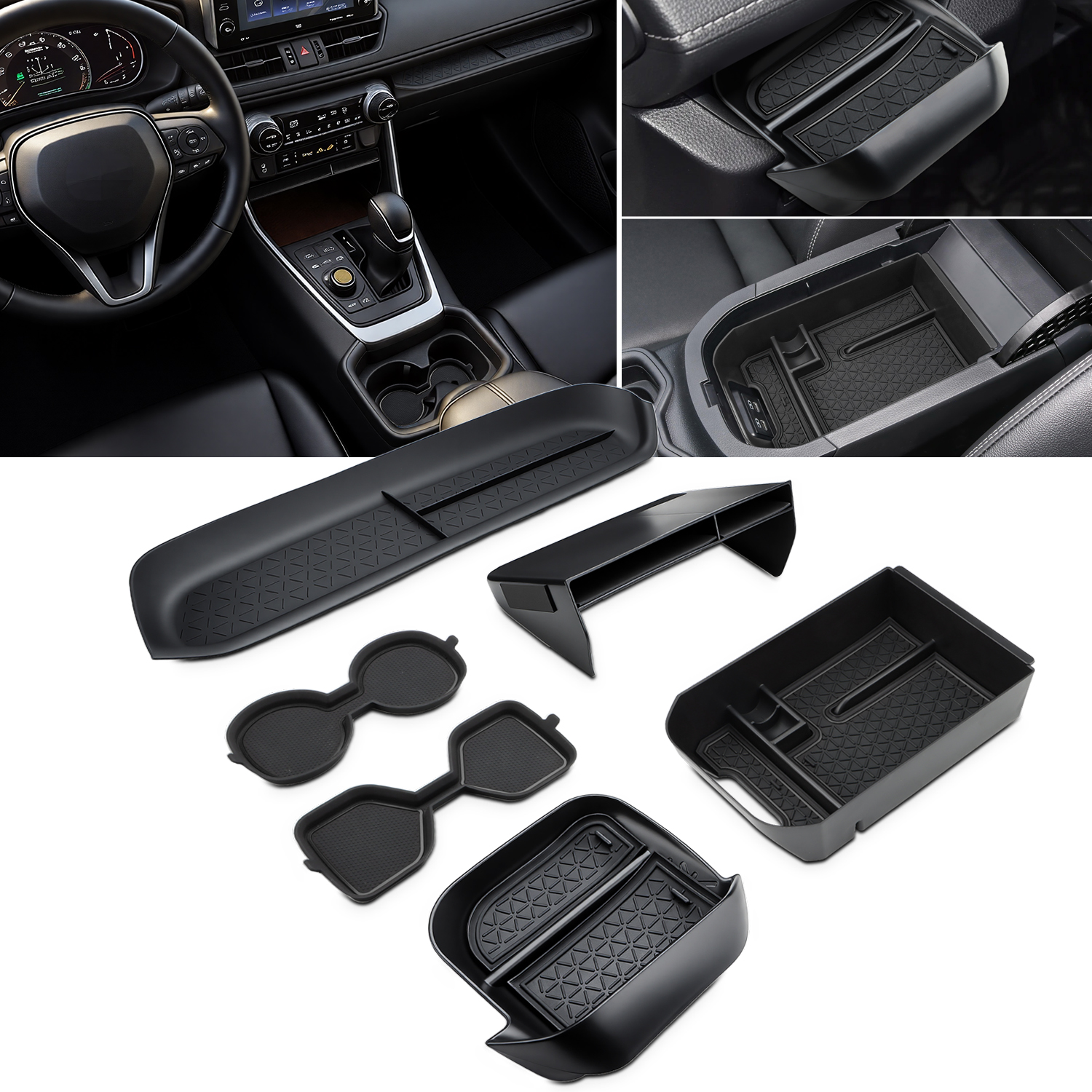 - 【Package contains】 6 pcs for Toyota RAV4 2019-2025 contains Center Console Cup Coaster & 2-nd Row Cup Coaster & Armrest Organizer & Driver Storage Drawer & Passenger Storage Mat & Gear Shift Tray