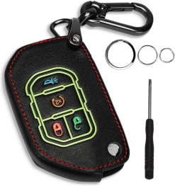 - Material: made of premium leather,soft surface. The key fob case can glow in the dark after store up light, which let you easier identify your key fob even in the night.