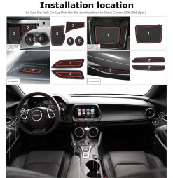Auovo Chevy Camaro 2016-2022 Door Cup Liners (9pcs,red trim)