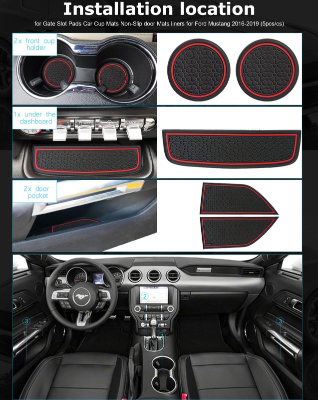 Auovo Ford Mustang 2015-2020 Cup holder Liners (5 pcs)