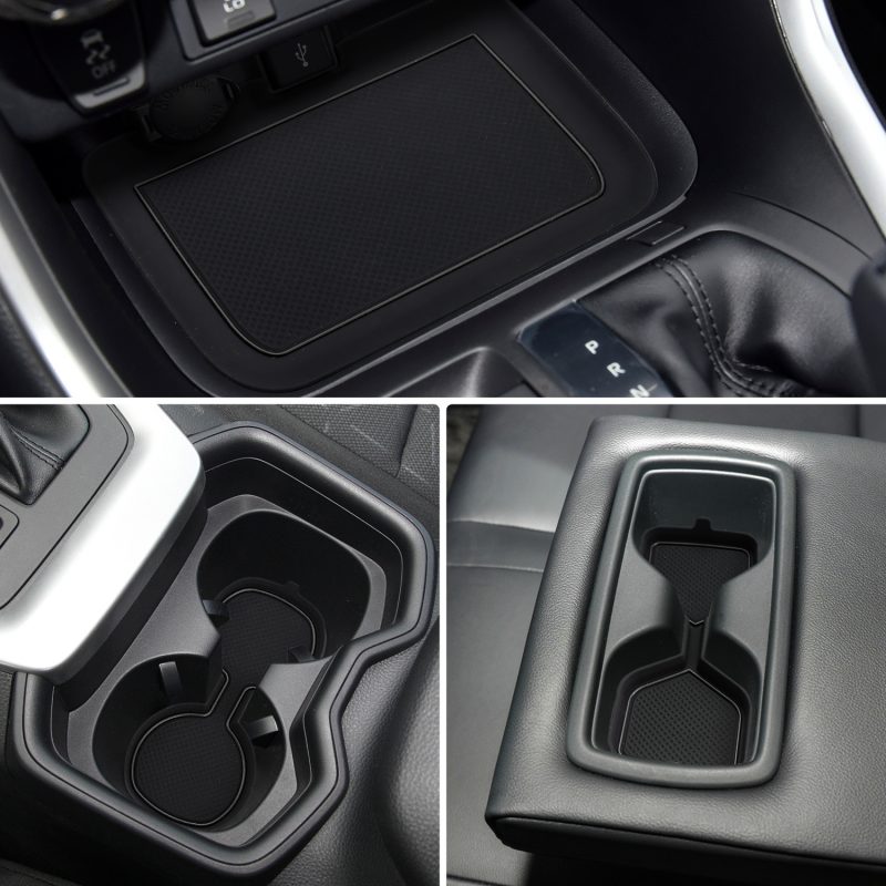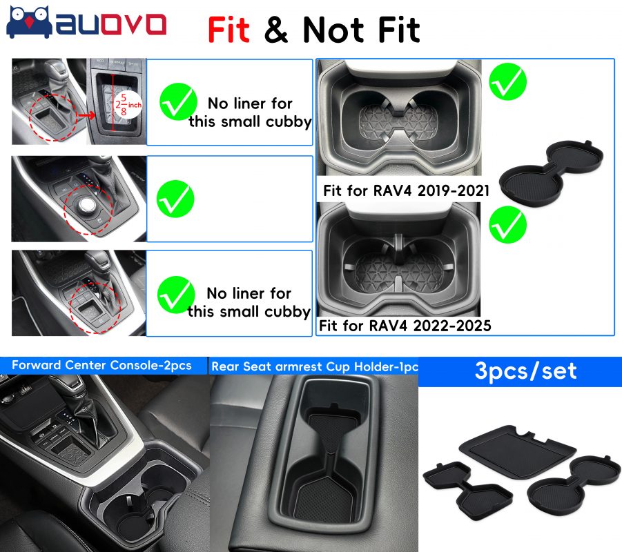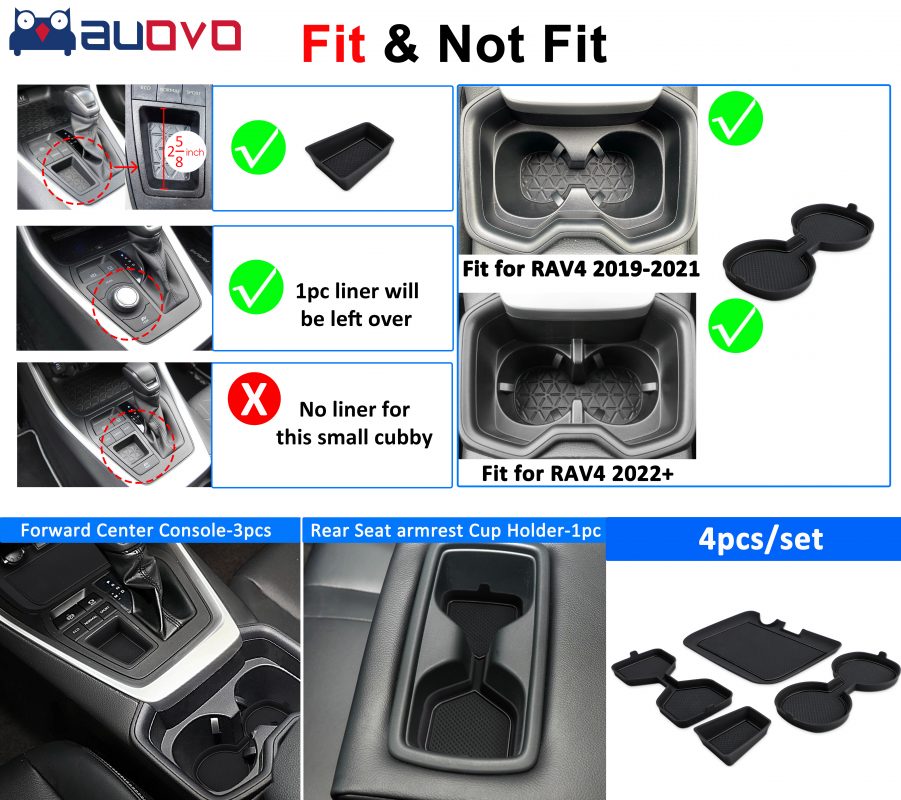 【FIT PERFECTLY】Auovo Car 3D Cup Holder Insert liners Forward Center Console Mat accessories Compatible with Toyota RAV4 2019 2020 2021 2022 2023 2024 2025 with trim level of limited / LE / XLE /XLE Premium / Adventure/LE Hybrid/ limited Hybrid/XLE Hybrid/ XSE Hybrid etc. (For left driving ONLY.)