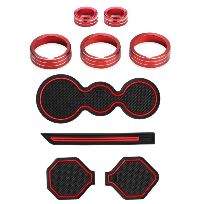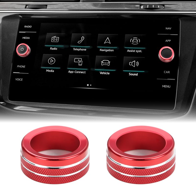 Instruction Auovo Cup Holder Inserts Liners AC Knob Covers Radio Knob Rings Compatible with Volkswagen Jetta 2019-2024 (Red, 2019B)