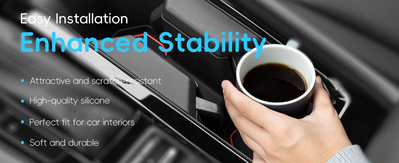 - [PULL-TAB and RAISED EDGE]1. Small pull-tab, easy to install and remove to clean. 2. Raised lip edge, like a wall to hold the water splashed from the cup and prevent it from spilling on the original cup holder.