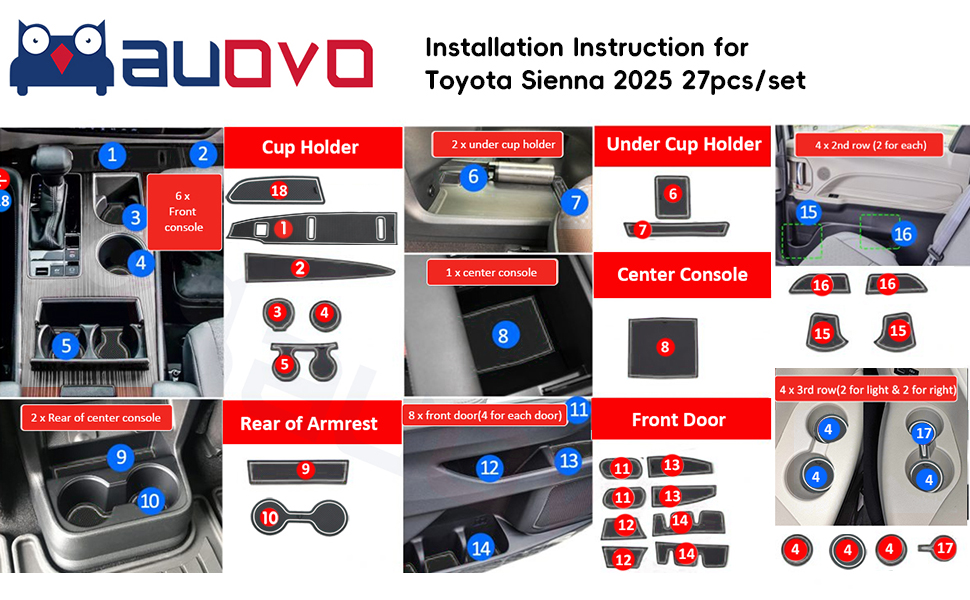 Auovo Anti Dust Door Mats for Toyota Sienna 2025 2026 Accessories