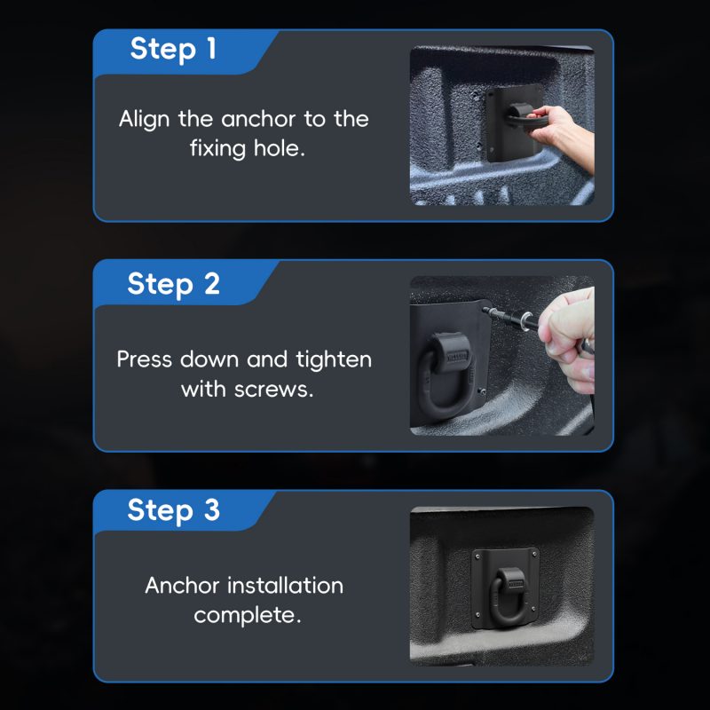 Two Ways to Install Tolls:(Tip: The holes in the Ford bed are no threaded.If you are using it for the first time, you need to use the provided screws to drill threads.)