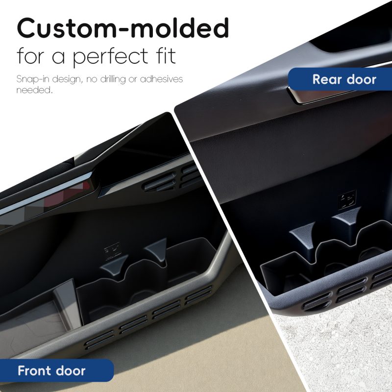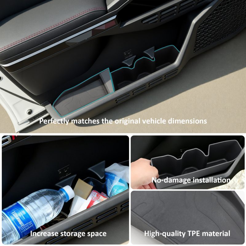 【FIT PERFECTLY FOR TACOMA GEN 4TH DOUBLE CAB】Auovo Door Side Storage Tray compatible with Toyota Tacoma Accessories 2026 2025 2024 gen 4th double cab with trim levels of SR, SR5, TRD PreRunner, TRD Sport, TRD Off-Road, Limited, Trailhunter, TRD Pro. Includes trays for both front and rear doors, fitting into the storage space of the door side. Utilizing 3D scanning data from the original vehicle ensures an absolutely perfect fit, making it appear as if it were a factory-installed component.