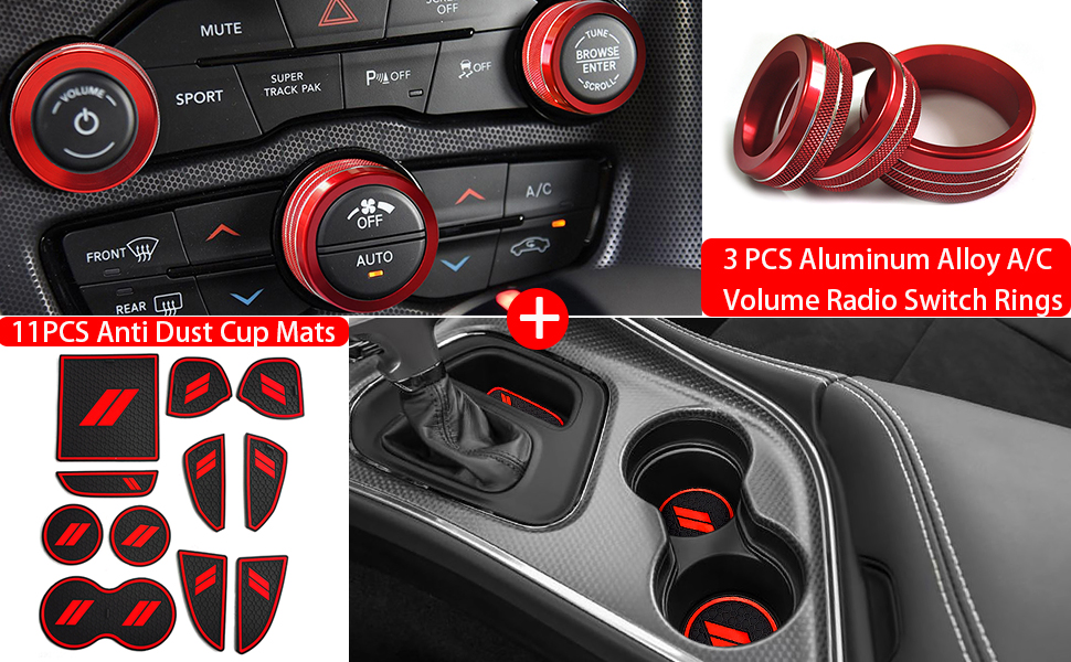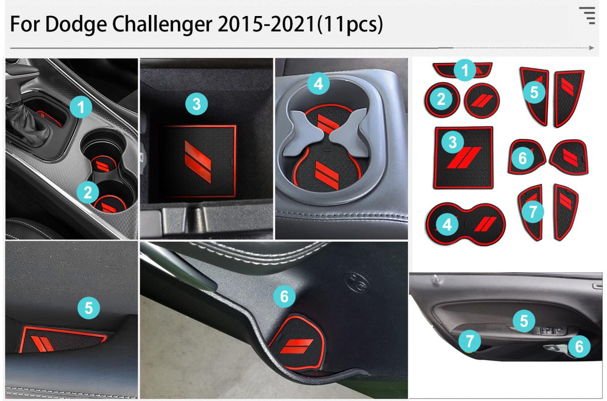Instruction Auovo 11PCS Cup Inserts Mats +3 PCS Knob Cover for Dodge Challenger 2015-2023 (2 in 1 Kit) If you have any question during using this item, please feel free to contact us. support@auovo.com