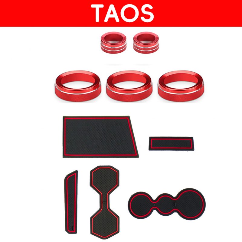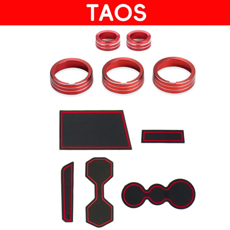 Auovo Cup Holder Inserts Liners AC Knob Covers Radio Knob Rings Compatible with Volkswagen Taos 2022-2024 (Red, B)